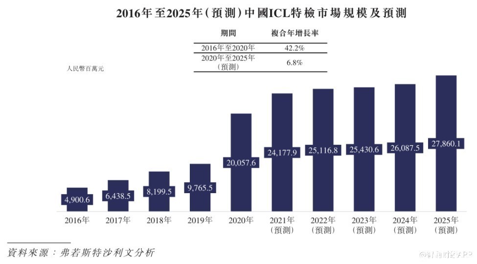 根据弗若斯特沙利文的数据,中国独立临床特殊检查市场将从2016年的49.01亿元增长到2020年的200.58亿元,年复合增长率为42.2%。 2025年将增至278.6亿元,年复合增长率为6.8%。行业仍处于快速发展阶段。